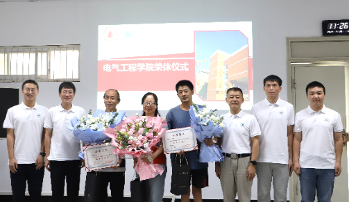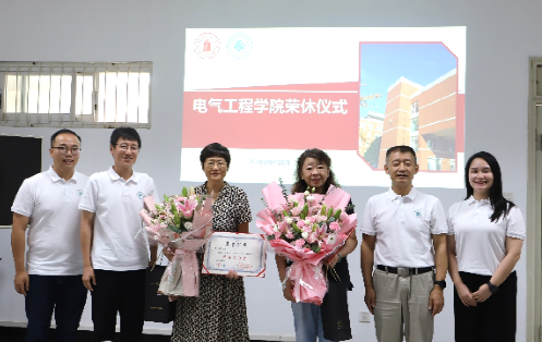2024年度教职工荣休仪式在基础教学楼会议室举行。学院党委书记赵昱辉、院长肖先勇,副书记兼纪委书记、工会主席张英敏,电气工程系党支部书记、院长助理陈实,系主任王渝红,自动化系党支部书记刘念、系主任赵涛,电工电子基础实验教学中心党支部书记印月、中心主任沈晓东,专业实验中心主任肖勇,以及荣休教职工和新进教职工代表参加了仪式。