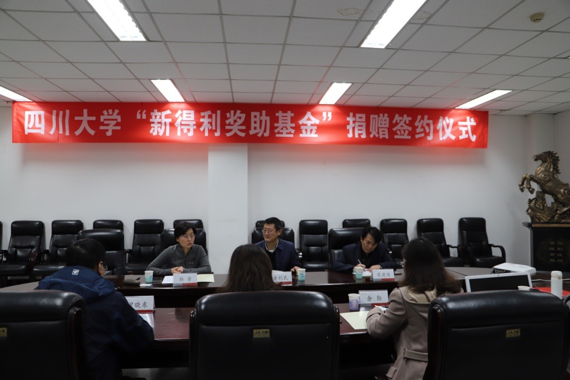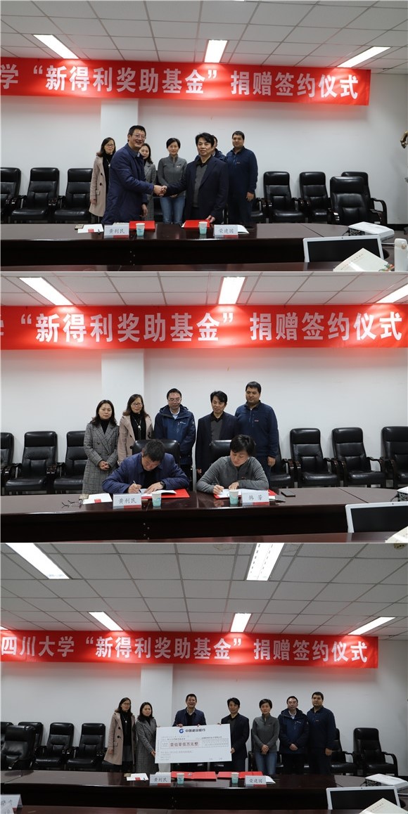 “新得利奖助学金”捐赠签约仪式在望江校区基础教学楼A220会议室举行。成都新得利电子有限公司董事长黄利民、探花视频