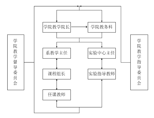 学院根据自身特点和实际情况制定了院、系三级质量监控机制,以加强教学管理,监控机制构架如下图: