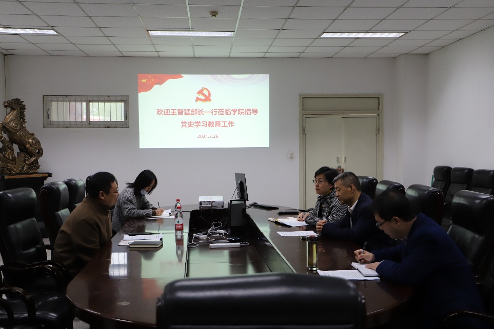 督查指导学院党史学习教育开展工作。学院党委书记韩芳、院长肖先勇、专职组织员陈曦、党政办主任邓丽华参加会议。