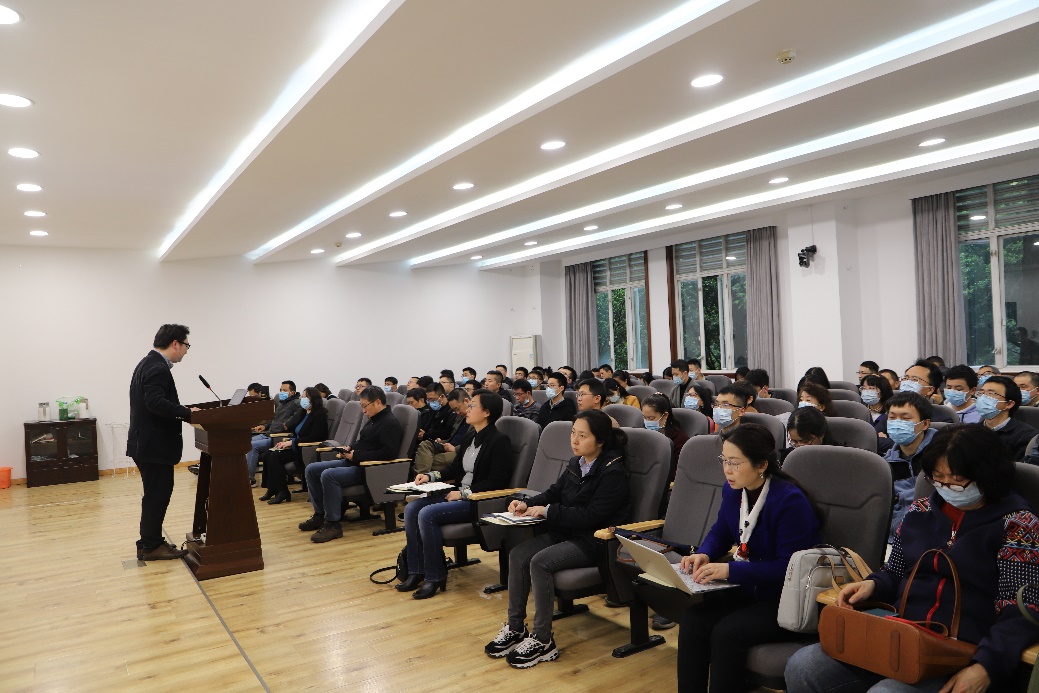 党史学习教育宣讲团成员张洪松教授作宣讲报告。学院党委书记韩芳主持会议。学院全体教师党员和学生党支部书记100余人参加宣讲会。