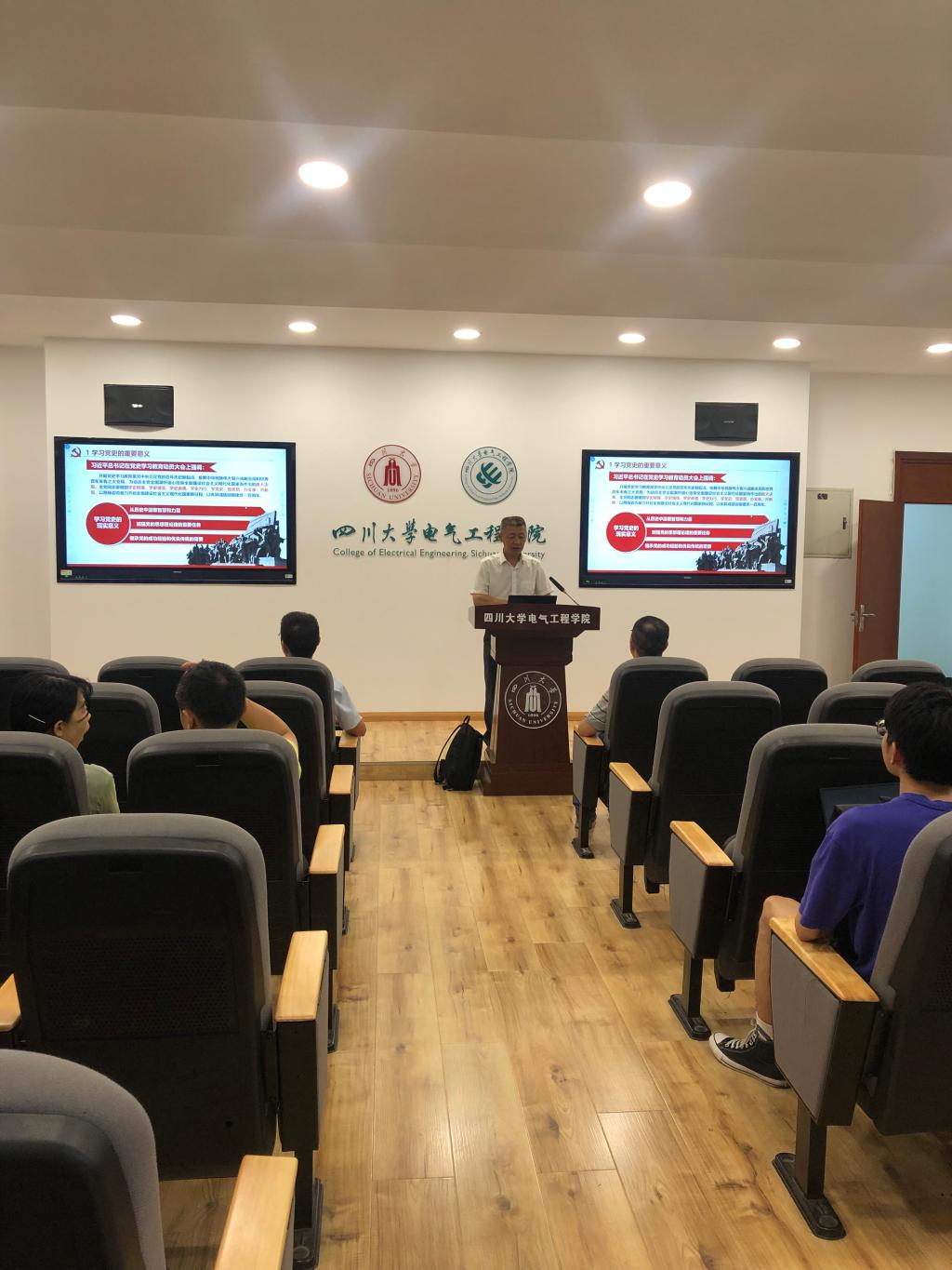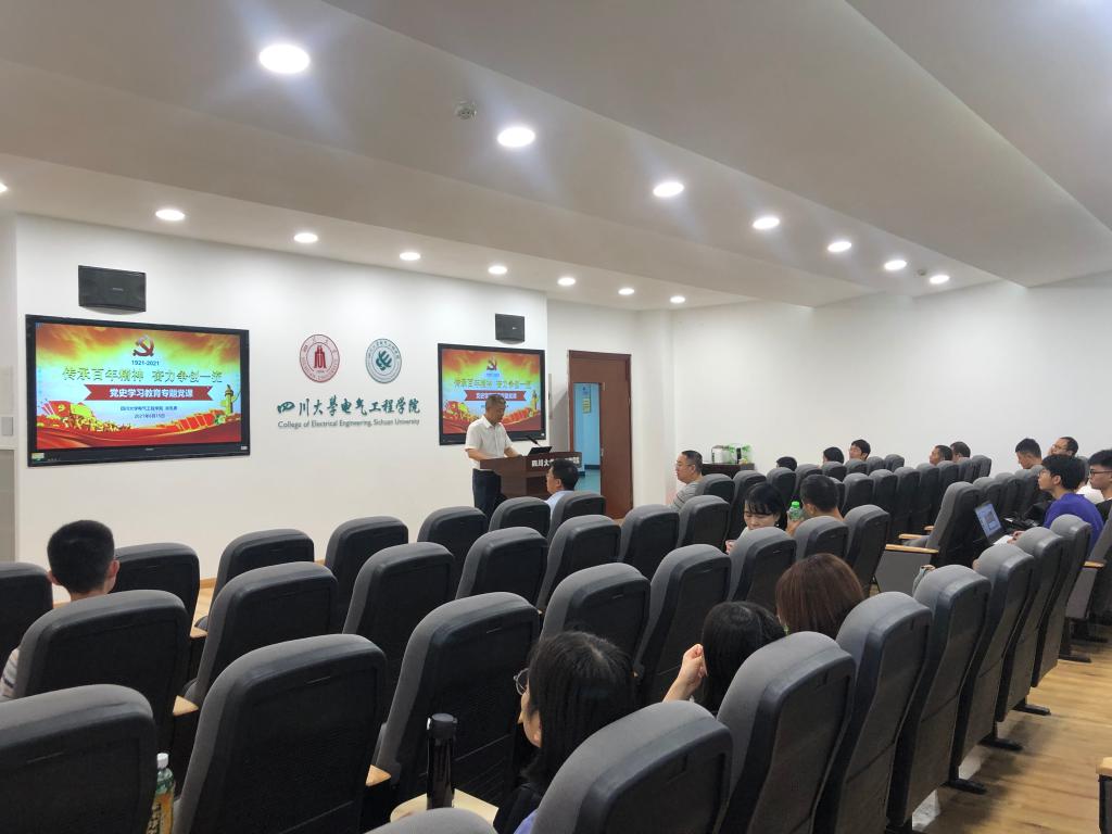 自动化系党支部邀请学院院长肖先勇在基础教学楼B206开展了“传承百年精神,奋力争创一流”的党史学习教育专题党课,自动化系党支部全体教师党员参加了党课。