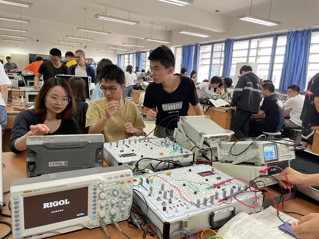 实验教学是培养学生动手实践能力的重要环节,学生学习接受能力存在差异,对实验原理的理解和仪器设备的操作能力各不相同,因此,印月老师坚持因人施教,对不同学生采取不同的教学方法。针对动手能力强的同学,印月老师会适当加大实验操作的难度,提出相关知识问题,引导同学们更多的思考探究,加深其对实验电路的理解;对于动手能力相对较弱的同学,印月老师则会到学生座位旁耐心地讲解演示,直到学生理解掌握;即使下课了,印月老师仍会留在实验室耐心指导个别学生操作实验仪器,完成电路搭建与数据测试;因请假而耽误课程的学生,印月老师更利用休息时间,单独指导,真正做到了她对自己定下的目标:一个学生也不落下、一个学生也不掉队。