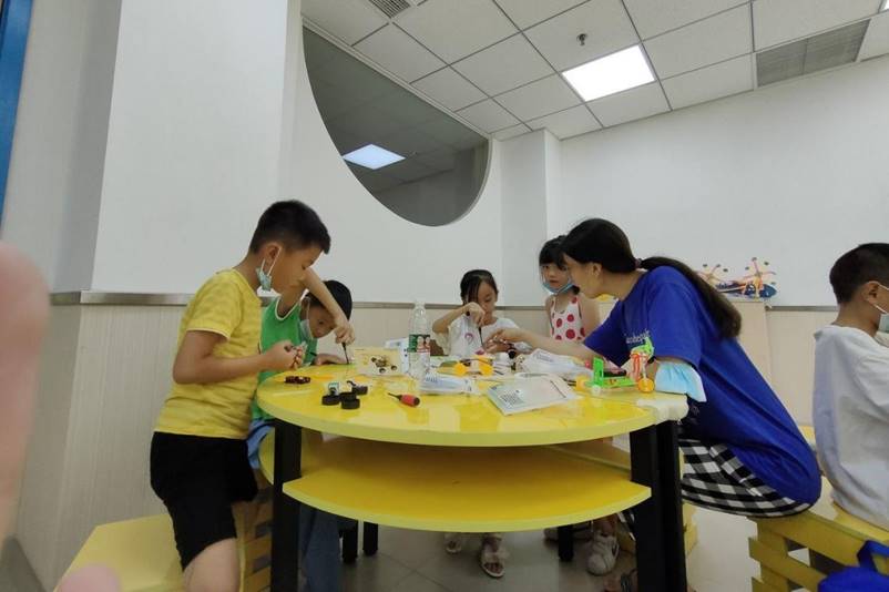 志愿者与同学们搭建模型