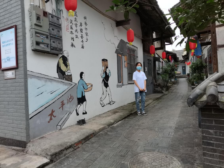 云团队成员汪梦灵同学则选择走进乡村,以乐山市峨眉山市罗目古镇为切入点,探寻中国大地上正悄然变化的古老乡村。罗目古镇又名青龙场,为四川省历史文化名镇,始建于唐高祖武德元年,相传是明清时期茶马古道从平原进入山区的第一站,与其毗邻的二峨山是峨眉山“道教第七洞天”的主要发祥地。8月6日,汪梦灵同学选择了线上与实地双线调研的方式,通过查证相关资料对其进行了初步了解。在实地调研的过程中,汪梦灵同学感受到了中国乡村正重新焕发的活力,她在实践日记中写道:“在今天的社会实践中,我真真切切地体会到了乡村振兴战略给中国乡村带来的变化,十年前的罗目镇与今天的罗目古镇可以说是天差地别了。”