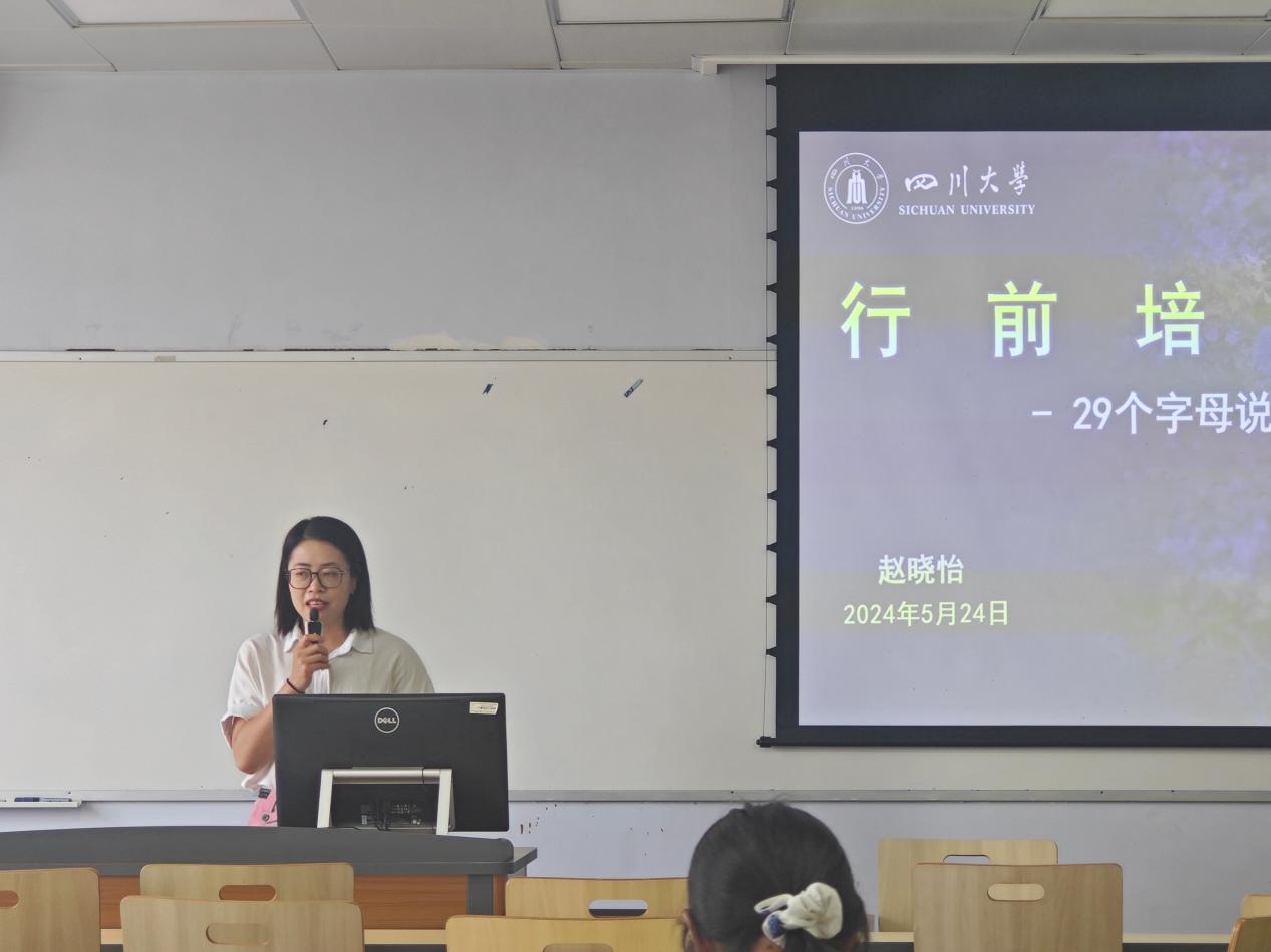 2024年5月24日下午,我院2022级中德班赴德行前培训会在江安校区一教A座A610顺利举行。本次活动邀请了学校国际合作与交流处赵晓怡老师及程小钰老师为2022级中德班全体学生进行行前培训。