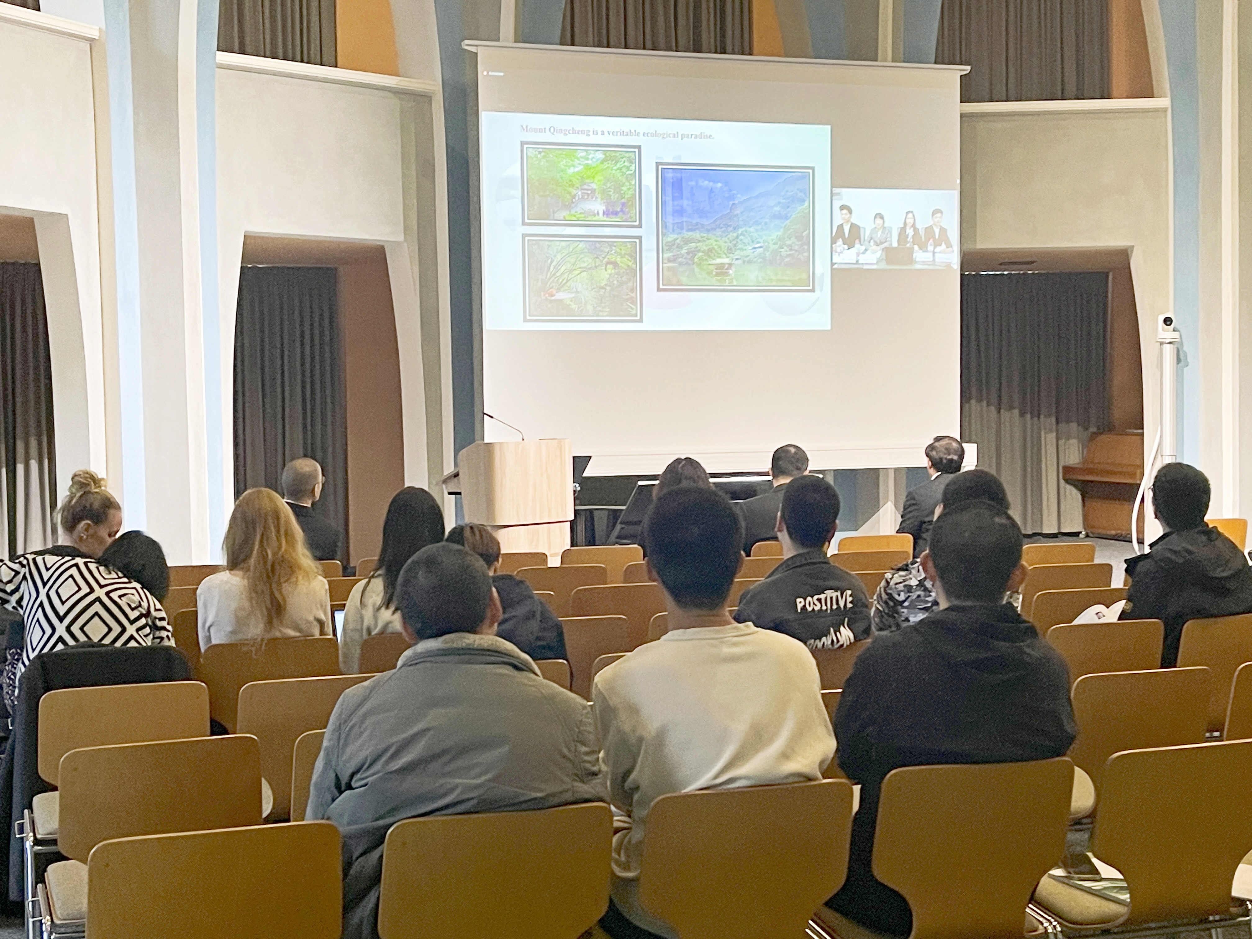 2022级中德班的杨轶帆、孙语然、邱思诚和李昊耘四位同学受邀在“中国周”活动的“学生主题日”作题为“Ecological Environment and Daily Life in Chengdu”的英语线上报告。