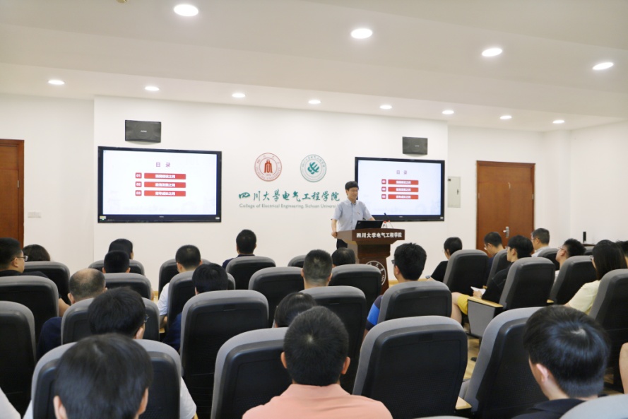 在“七一”即将到来之际,根据中央关于开展学习贯彻习近平新时代中国特色社会主义思想主题教育的部署要求及学校工作安排,6月30日下午,学院党委书记赵昱辉在报告厅讲授了主题教育专题党课,与学院党员干部共同庆祝中国共产党成立102周年。党课由党委副书记戴婷婷主持,学院全体党支部书记、电气工程系全体教师、研究生第一支部全体党员参加了此次党课。