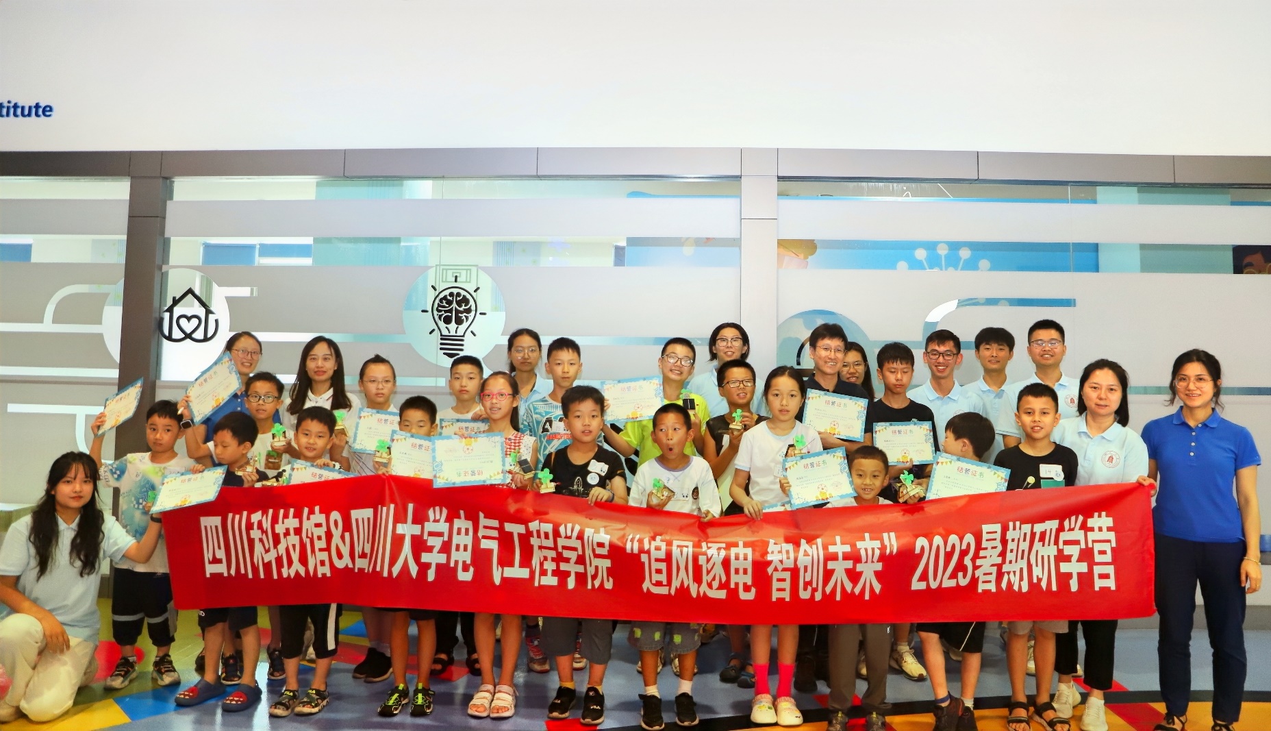携手四川科技馆,推出“追风逐电 智创未来”公益研学营,每天有20名8-12岁的青少年参加研学营活动。学院党委书记赵昱辉、副书记戴婷婷、辅导员李程与学院“科创中国”科技志愿服务团学生成员共同参加了第一天的研学营。