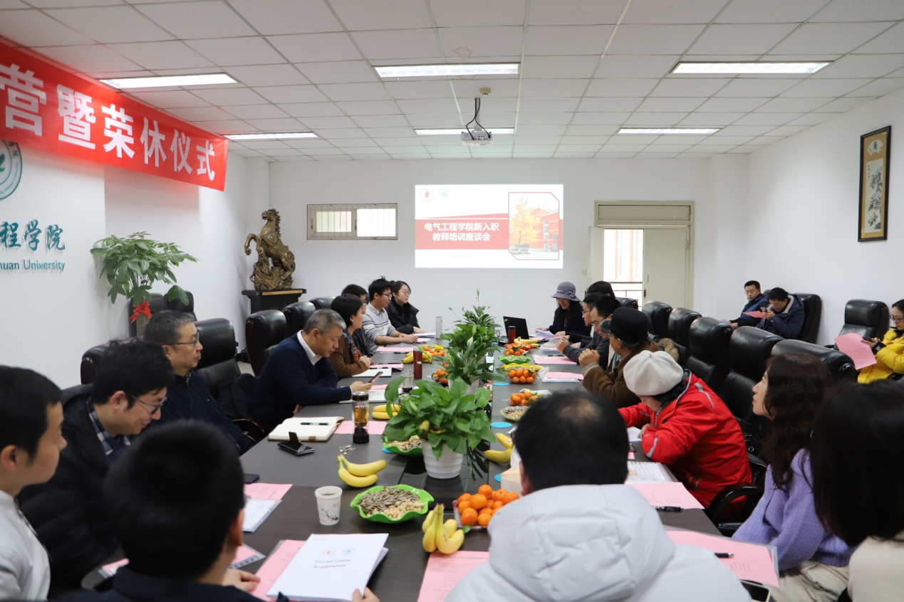 会议第一阶段为新入职教师培训座谈会。张英敏副书记首先向新入职的教师介绍了参会人员,并开启入营仪式。仪式上,学院参会领导向13名新入职教师代表颁发了“电气入营证”,欢迎他们成为探花视频