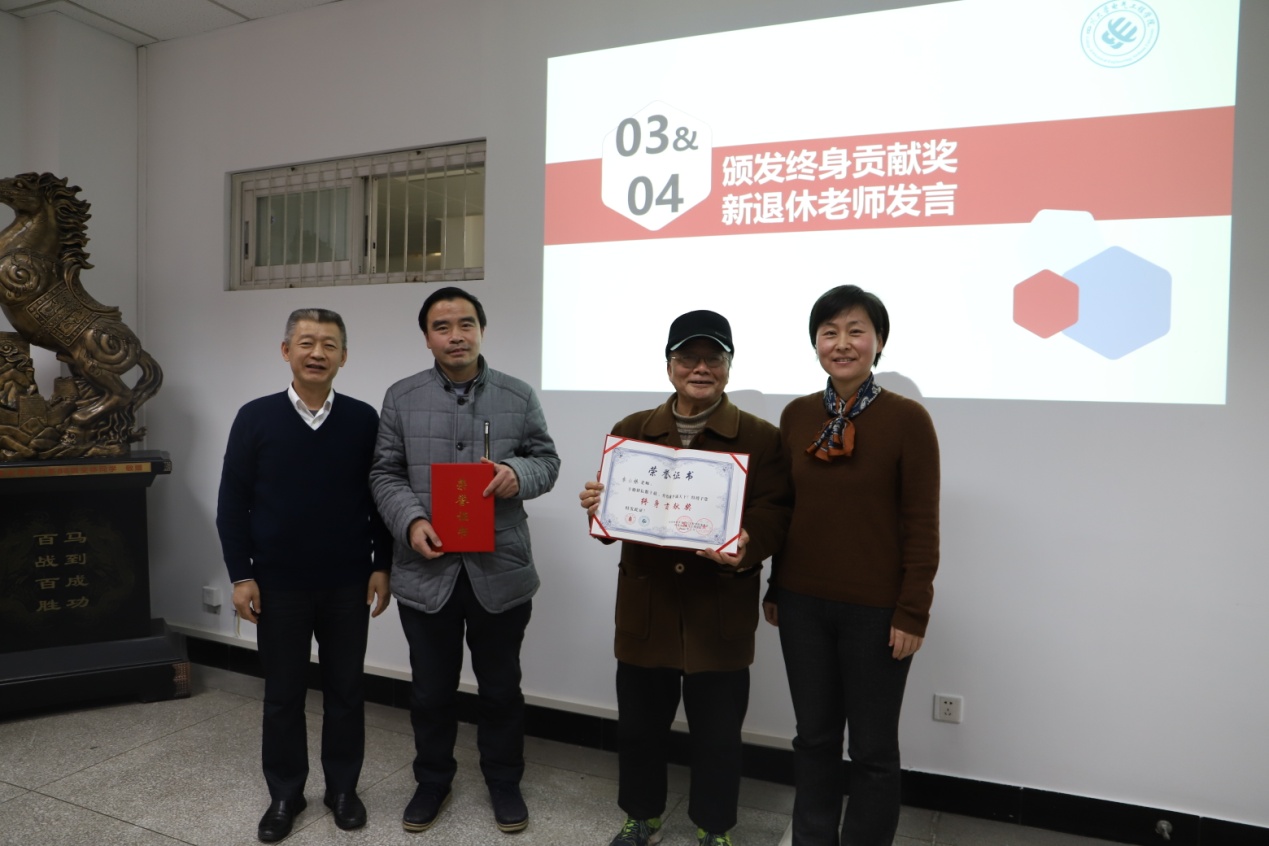 会议第二阶段为荣休仪式。学院2021年退休的教师代表李小根、黄宏光两位老师参加了会议。会上,韩书记和肖院长代表学院对荣休教师致以诚挚的问候和崇高的敬意,对荣休教师长期来为学院发展做出的贡献表示衷心的感谢,希望荣休老师一如既往地关心和支持学院的各项工作,并祝福他们身体健康,新生活绚丽多彩。