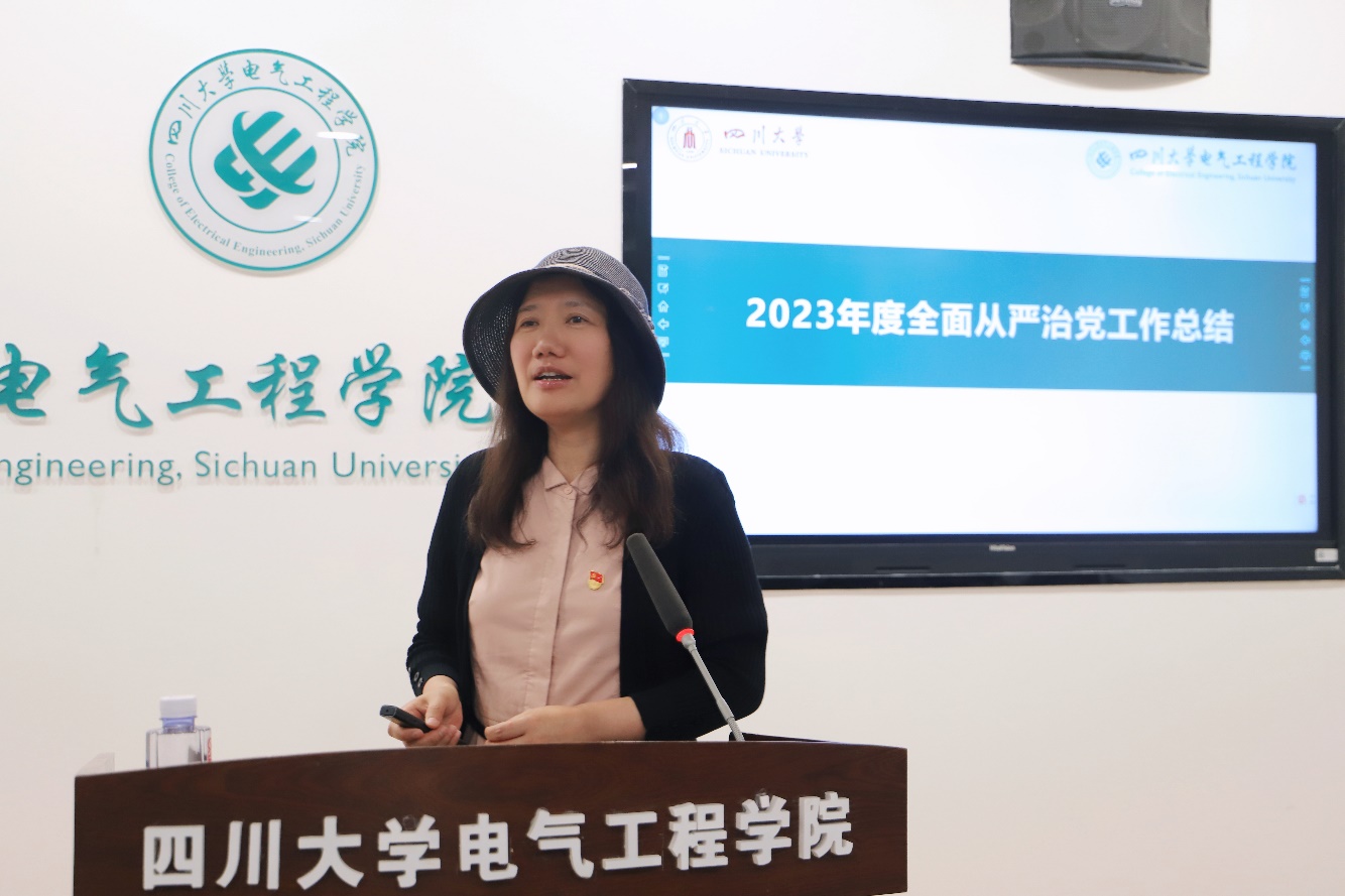 学院党委副书记兼纪委书记张英敏从提高政治站位、强化思想教育、完善组织管理、加强作风建设、严格纪律约束、健全全面从严治党体系等方面总结了过去一年学院全面从严治党工作。围绕2024年度学院全面从严治党的重点工作任务,她着重强调了六个方面:一是深化拓展主题教育成果,二是聚焦“两个维护”深化政治监督,三是深入开展“三个一流”创建活动,四是推动作风建设持续走深走实,五是全面深化纪律教育,六是深入推动全面从严治党体系更加健全完善。她提出,我们要深入学习领悟习近平总书记关于党的自我革命重要思想的重大意义、丰富内涵和实践要求,推进全面从严治党向纵深发展,营造风清气正的良好生态。
